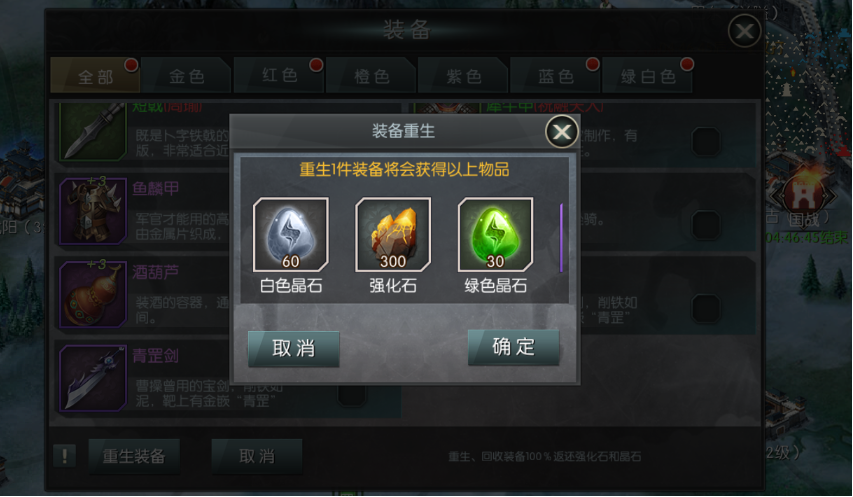 強(qiáng)化百分百成功,裝備最高強(qiáng)化+12,同時(shí)會(huì)消耗一定的強(qiáng)化石和強(qiáng)化結(jié)晶。裝備的強(qiáng)化好就好在玩家不需要擔(dān)心強(qiáng)化低品質(zhì)的裝備會(huì)浪費(fèi)材料,游戲中可以重生裝備,無條件返還所有的強(qiáng)化素材,非常的方便。