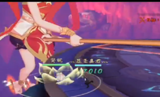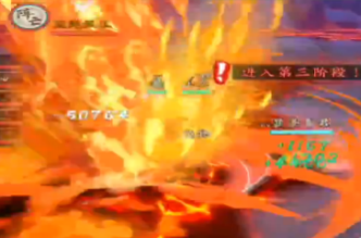 羅睺化魂變身,飛至半空,蓄力弒神槍。玩家需要根據(jù)系統(tǒng)提示操作抵御;