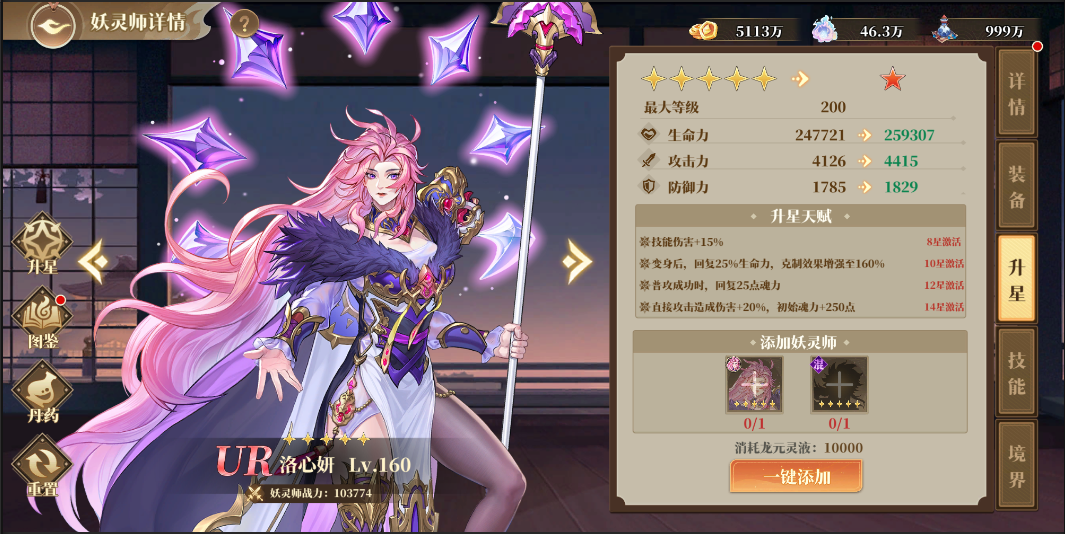 妖靈師可以通過(guò)消耗升級(jí)材料(妖晶幣、龍?jiān)`液)提升等級(jí),而升級(jí)可以提升面板屬性,當(dāng)達(dá)到等級(jí)上限時(shí)可以通過(guò)消耗妖晶幣、龍?jiān)`液和九轉(zhuǎn)丹進(jìn)階等級(jí)上限。不過(guò)前期資源有限,還是盡量避免將養(yǎng)成材料分散給太多角色,練好一隊(duì)主力隊(duì)伍能過(guò)主線才是最重要的。?