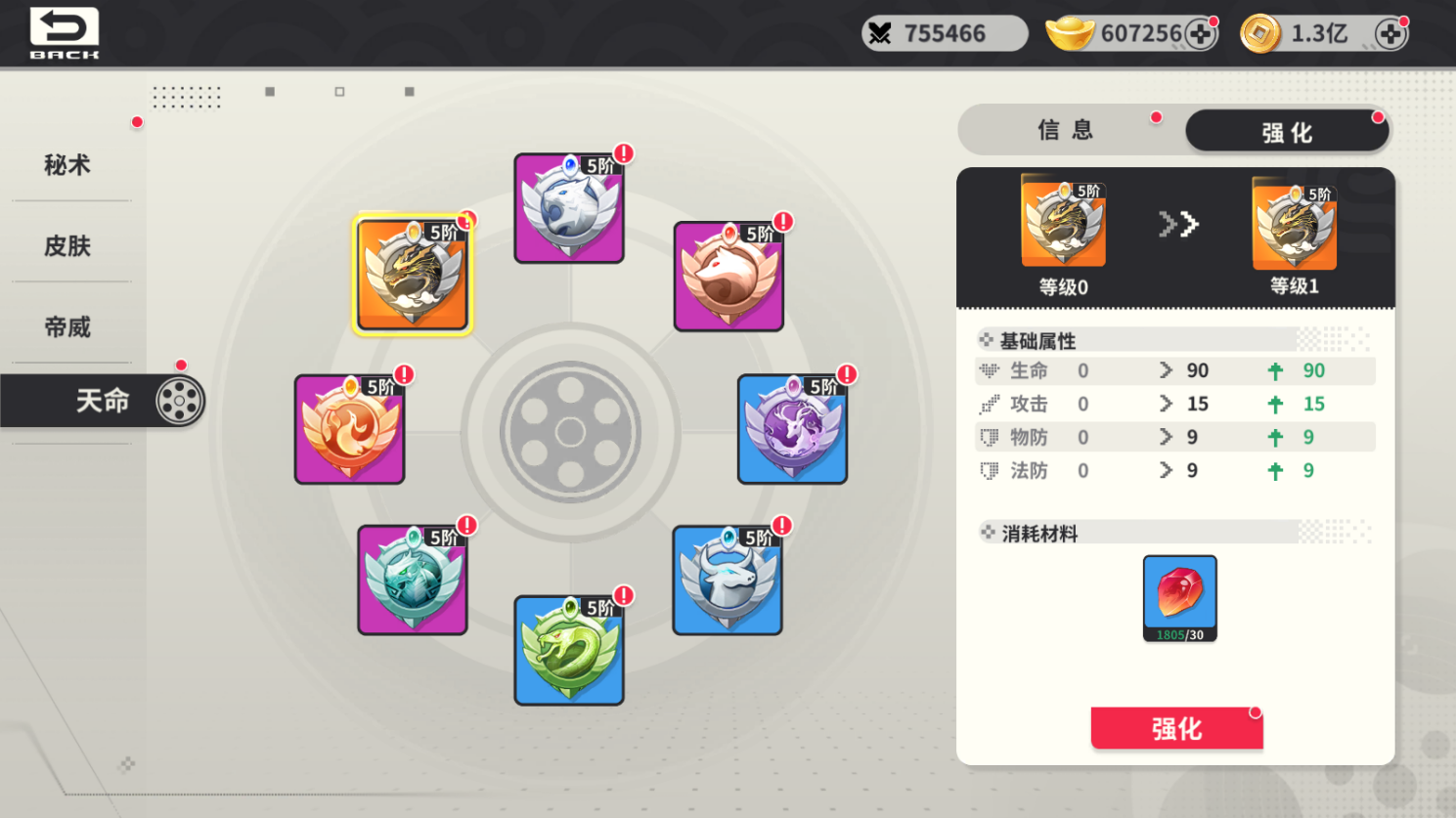 打造獲得的天命包含不同品質(zhì)和完美度,只有橙品的天命可以突破