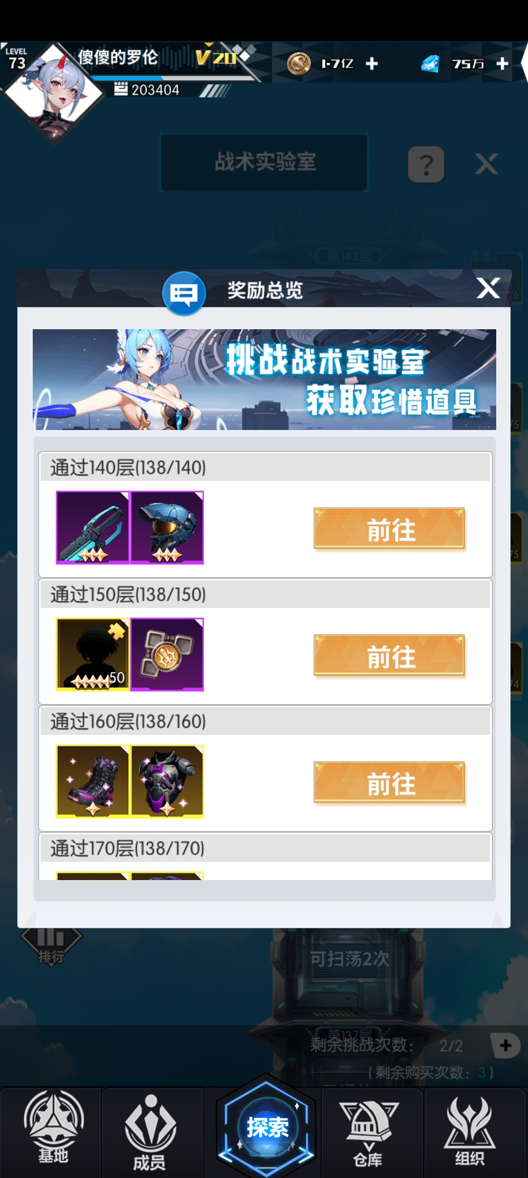 系統(tǒng)介紹:首通每層實驗室均可獲得元石、金幣及英雄精英,通過達標(biāo)層數(shù)可獲得額外達標(biāo)獎勵。