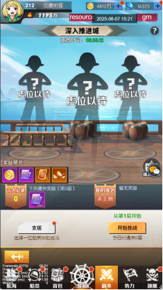 2.?共三個玩家組隊,每個玩家只可出兩名船員,組成6個船員的隊伍進(jìn)行挑戰(zhàn)