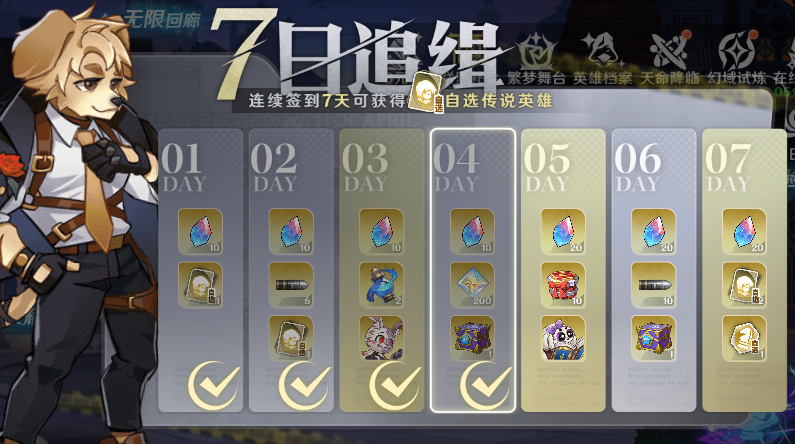 4、登錄七天領取海量道具禮包、英雄,傳說英雄自選,英雄阿絲/阿蛛,齊麗雅,登錄七天還有傳說符文